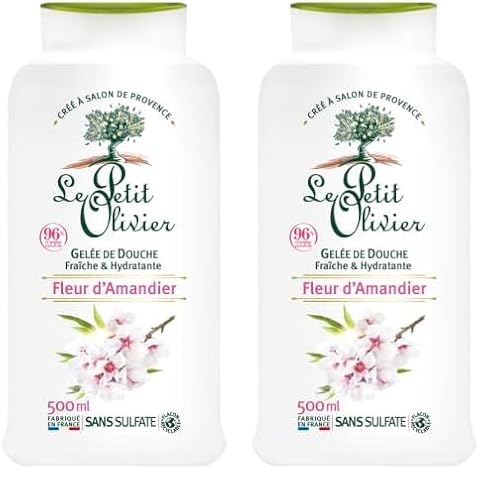 LE PETIT OLIVIER - Gelée De Douche Hydratante - Fleur D'Amandier - PH Neutre Pour La Peau - 96% D'Origine Naturelle - Sans Savon, Sans Colorant - Fabriqué En France - 500 ml (Lot de 2)