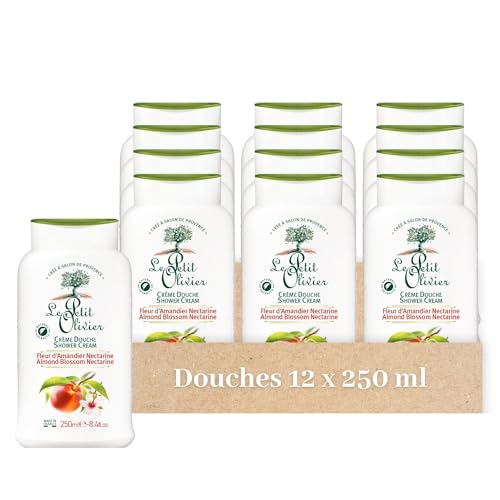LE PETIT OLIVIER - Crème Douche Extra Douce & Hydratante (lot de 12x250ml) - Fleur d'Amandier Nectarine - PH Neutre Pour La Peau - Sans Savon, Sans Colorant - Fabriqué En France - 500 ml