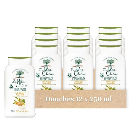 LE PETIT OLIVIER - Crème Douche Extra Douce & Hydratante (lot de 12x250ml) - Lait d'Argan - PH Neutre Pour La Peau - Sans Savon, Sans Colorant - Fabriqué En France - 500 ml