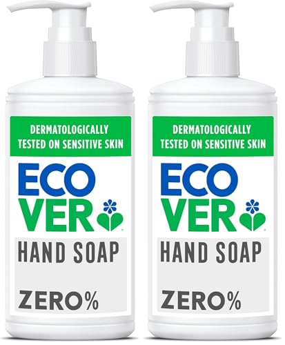 Ecover Zero Savon Liquide pour les Mains, Formule à Base de Plantes, Spécial Peaux Sensibles, Sans Parfum ni Colorant, Flacon de 250 ml (Lot de 2)