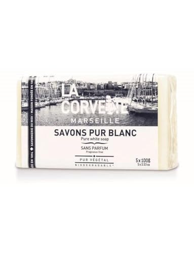 La Corvette - Lot de Pains de Savon Pur Blanc - Sans Parfum, Colorant ou Graisse Animale - 100% d'Origine Végétale - Multi-Usages Corps - 5x100g
