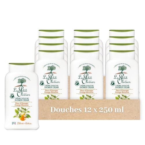 LE PETIT OLIVIER - Crème Douche Extra Douce & Hydratante (lot de 12x250ml) - Fleur d'Oranger - PH Neutre Pour La Peau - Sans Savon, Sans Colorant - Fabriqué En France - 500 ml
