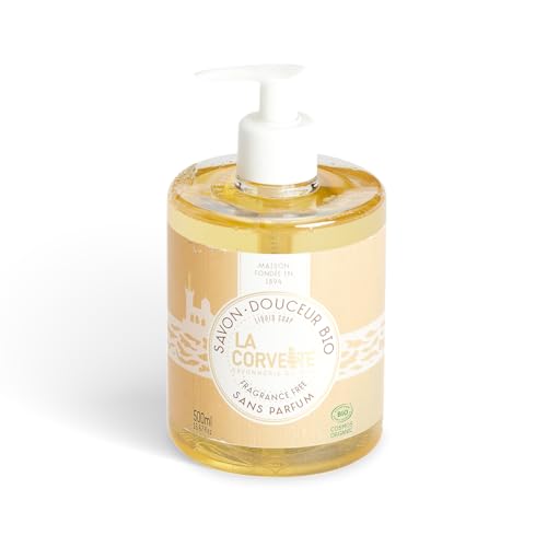 La Corvette - Savon Liquide Hypoallergénique BIO – SANS PARFUM – Pour Peaux Sensibles – Fabriqué au Chaudron – 500ml – COSMOS ORGANIC