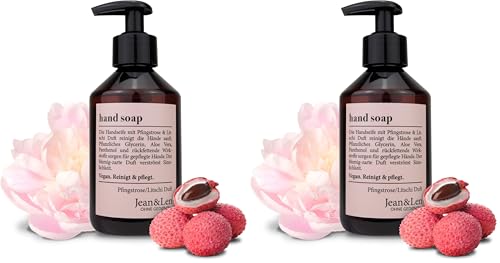 Jean & Len Savon pour les mains Pivoine & Litchi, savon liquide en distributeur à pompe, parfum fleuri et délicat, sans parabènes, silicones & microplastiques, végétalien, 250 ml (Lot de 2)
