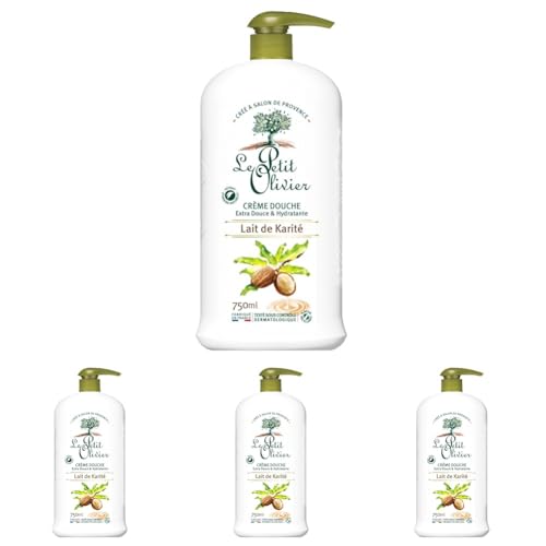 LE PETIT OLIVIER - Crème Douche Extra Douce & Hydratante - Lait De Karité - Pour Toute La Famille - PH Neutre Pour La Peau - Sans Savon, Sans Colorant - Fabriqué En France - 750 ml (Lot de 4)