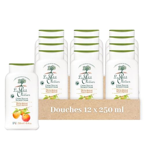 LE PETIT OLIVIER - Crème Douche Extra Douce & Hydratante (lot de 12x250ml) - Pêche Abricot - PH Neutre Pour La Peau - Sans Savon, Sans Colorant - Fabriqué En France - 500 ml
