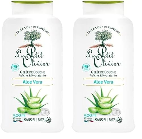 LE PETIT OLIVIER - Gelée De Douche Hydratante - Aloe Vera - PH Neutre Pour La Peau - 96% D'Origine Naturelle - Sans Savon, Sans Colorant - Fabriqué En France - 500 ml (Lot de 2)