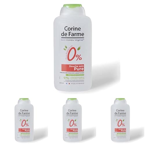 Corine de Farme - Douche Soin Pure 0%, Peaux Sèches et Sensibles - pH Neutre, Sans Savon ni Colorant, 14 Ingrédients, Clean Beauty - Fabriqué en France - 500 ml (Lot de 4)