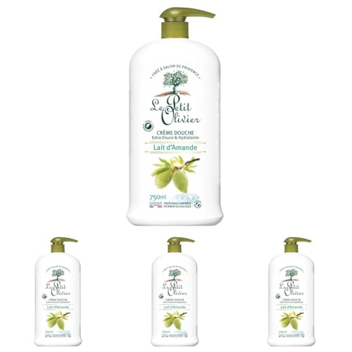 LE PETIT OLIVIER - Crème Douche Extra Douce & Hydratante - Lait D'Amande - Pour Toute La Famille - PH Neutre Pour La Peau - Sans Savon, Sans Colorant - Fabriqué En France - 750 ml (Lot de 4)