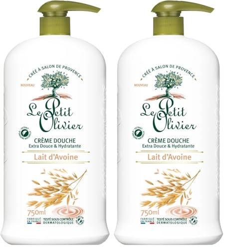 LE PETIT OLIVIER - Crème Douche Extra Douce & Hydratante - Lait D'Avoine - Pour Toute La Famille - PH Neutre Pour La Peau - Sans Savon, Sans Colorant - Fabriqué En France - 750 ml (Lot de 2)