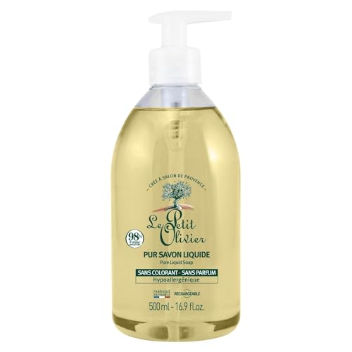 LE PETIT OLIVIER - Pur Savon Liquide - Hypoallergénique - Sans Parfum & Sans Colorant - Nettoie La Peau En Douceur - 98% D'Origine Naturelle - Cuit au Chaudron - Fabriqué En France - 500ml