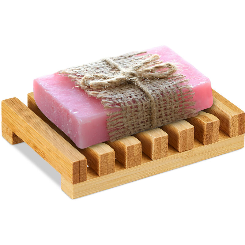Relaxdays - Porte-savon bambou, grille, résiste à l'humidité, support pour savonnette solide, h x l 11,5 x 8,5 cm, nature