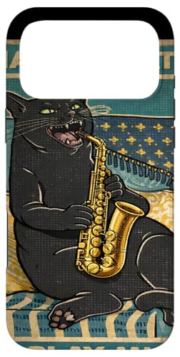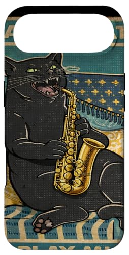 T-Shirt rétro Amusant avec Motif de Chat Jouant du Saxophone Coque pour iPhone 17 Pro Max