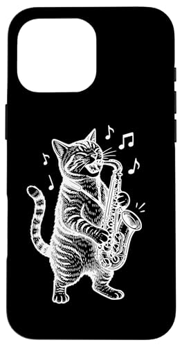 Animal Saxophone Chat Dessin animé Coque pour iPhone 16 Pro Max