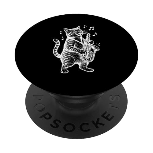 Animal Saxophone Chat Dessin animé PopSockets PopGrip Adhésif