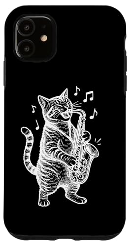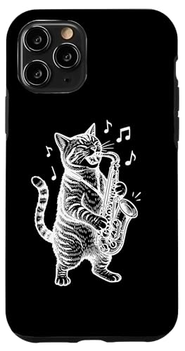 Animal Saxophone Chat Dessin animé Coque pour iPhone 11 Pro