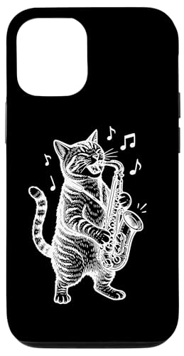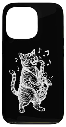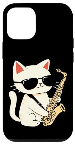 Animal Saxophone Chat Dessin animé Coque pour iPhone 13 Pro
