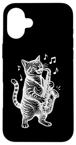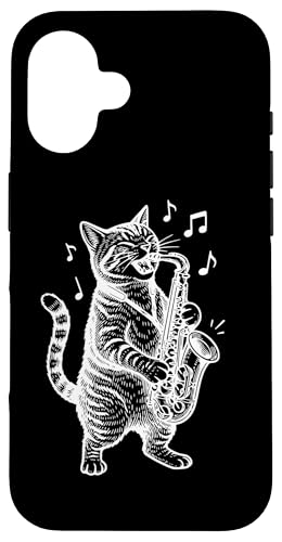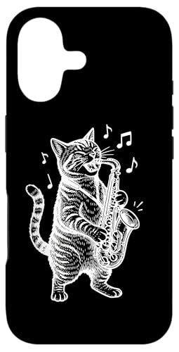 Animal Saxophone Chat Dessin animé Coque pour iPhone 16 Plus