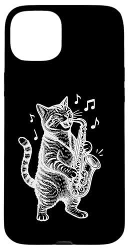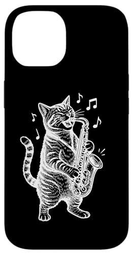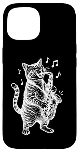 Animal Saxophone Chat Dessin animé Coque pour iPhone 15