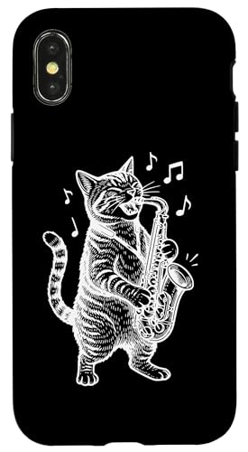 Animal Saxophone Chat Dessin animé Coque pour iPhone X/XS