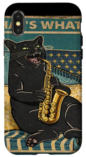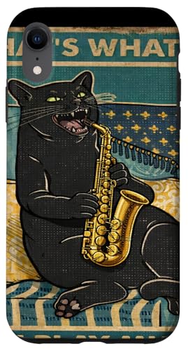 T-Shirt rétro Amusant avec Motif de Chat Jouant du Saxophone Coque pour iPhone XR
