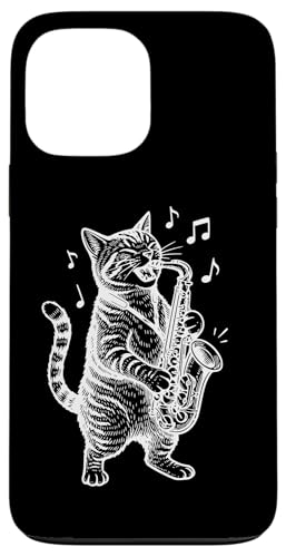 Animal Saxophone Chat Dessin animé Coque pour iPhone 13 Pro Max