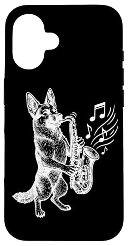 Chien d'art Saxophone Berger Allemand Coque pour iPhone 16 Plus