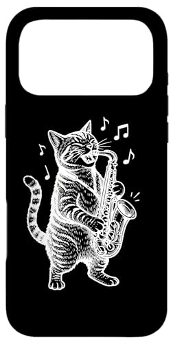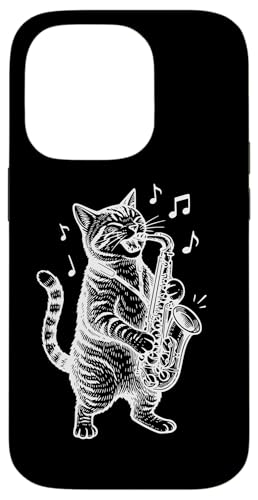 Animal Saxophone Chat Dessin animé Coque pour iPhone 14 Pro