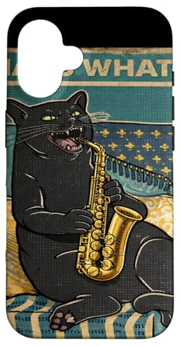 T-Shirt rétro Amusant avec Motif de Chat Jouant du Saxophone Coque pour iPhone 16