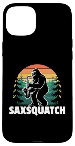 Saxsquatch Bigfoot Saxophone Coucher de Soleil Coque pour iPhone 15 Plus
