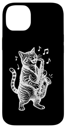 Animal Saxophone Chat Dessin animé Coque pour iPhone 14 Plus