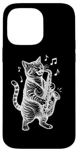 Animal Saxophone Chat Dessin animé Coque pour iPhone 14 Pro Max