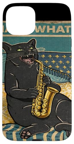 T-Shirt rétro Amusant avec Motif de Chat Jouant du Saxophone Coque pour iPhone 15 Plus