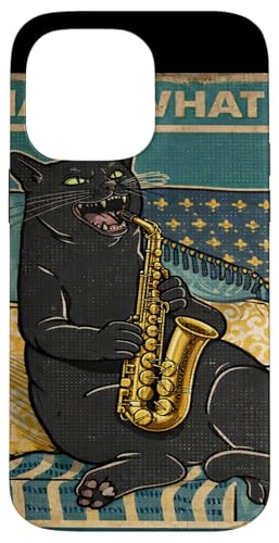 T-Shirt rétro Amusant avec Motif de Chat Jouant du Saxophone Coque pour iPhone 14 Pro Max
