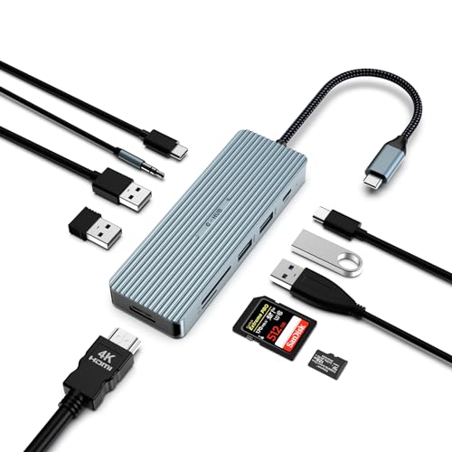 YLSCI Station d'accueil 10 en 1, Hub USB C avec HDMI 4K, 2 Ports USB-A3.0, 2 Ports USB-A 2.0, 1 Lecteur de Carte Type-C, SD/TF, PD 100W, 3,5 mm, Convient pour Windows, Mac OS, Surface Pro