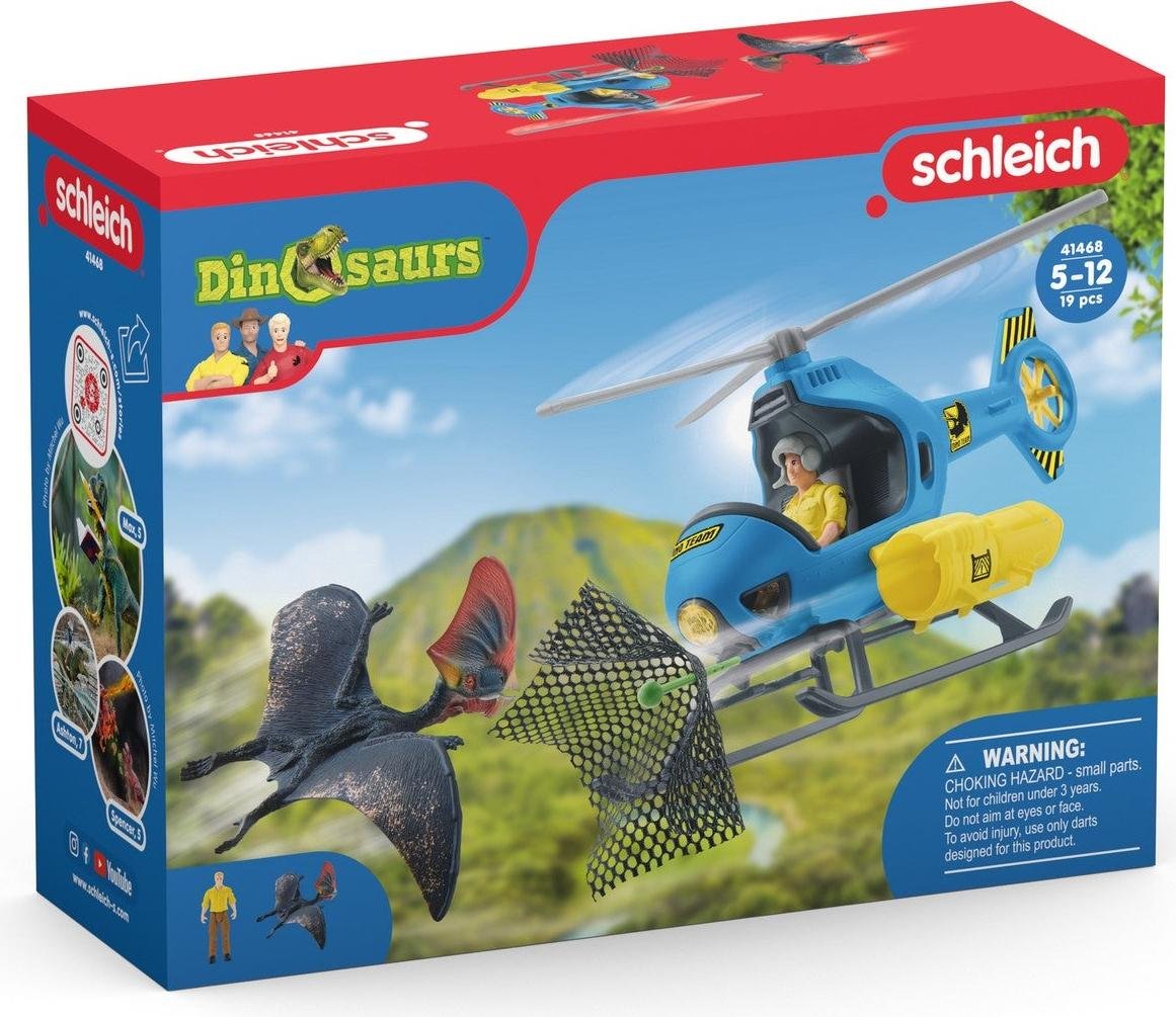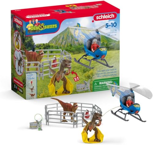Schleich Dinosaurs | Sauvetage en hélicoptère des Dinosaures 72216 | Coffret avec hélicoptère, Flynn, 2 Dinosaures & Accessoires | Cadeau Enfant | Jouet dès 5 Ans | 28 pièces | exclusivité Amazon