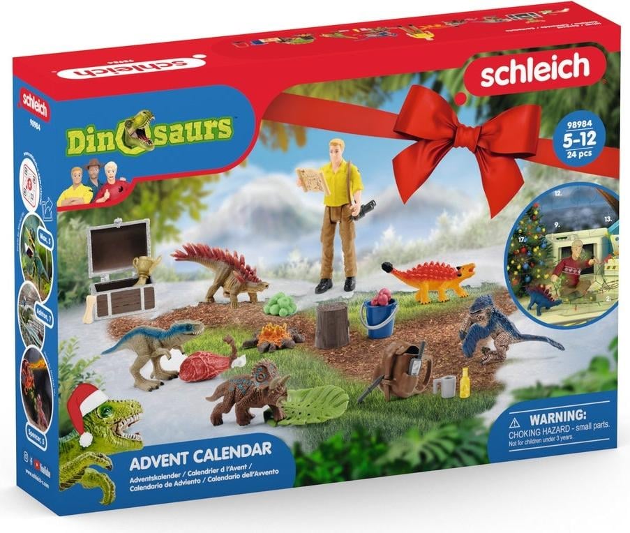 schleich DINOSAURS | Calendrier de l'avent 2025 - 98984 | avec figurine articulée, 6 mini dinosaures, coffre au trésor & accessoires | Jouets dinosaures & idée cadeau pour enfants à partir de 5 ans | 24 pièces (FR/IT Version)
