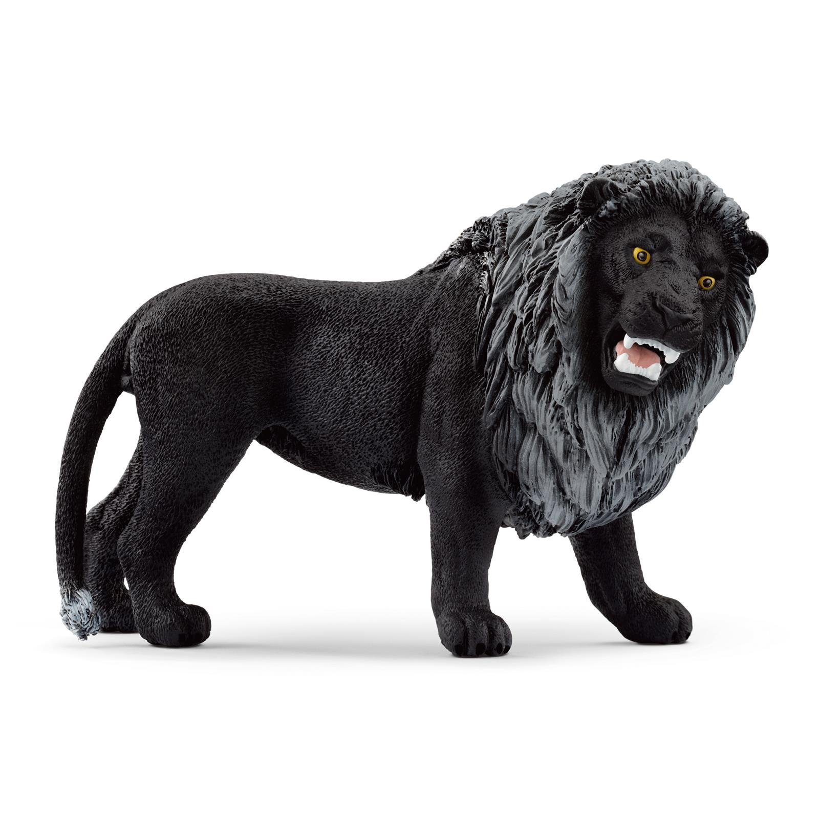 Schleich, Figurine Lion Wildlife en position de saut et de rugissement, noir