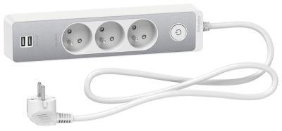 Schneider Electric Rallonge multiprise on/off SCHNEIDER ST933U1WA 3 prises - 2P+T 2 USB 1,5 m blanc finition alu brossé