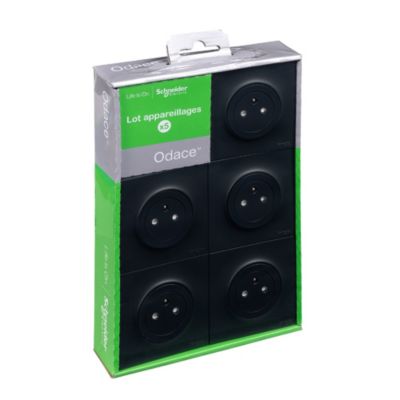 5 prises affleurantes Odace A 2 ports avec terre Schneider Electric