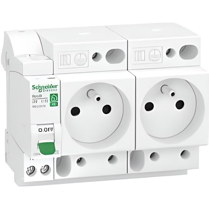Combiné disjoncteur + 2 prises - SCHNEIDER ELECTRIC - Resi9 XE - 16A - Courbe C - Blanc