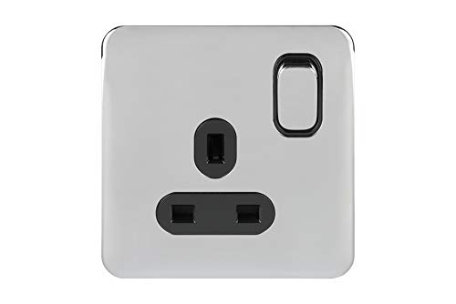 Schneider Electric Lisse GGBL3010DBPC Lot de 10 prises de courant simples avec interrupteur 13 A double pôle Chrome poli avec insert noir