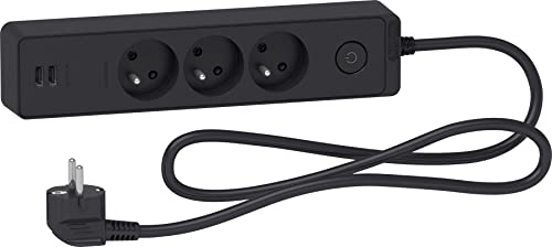 Schneider Electric SC5ST933U1B Rallonge multiprises 3 Prises 2P+T Anthracite 2 USB 1,5m, Noir