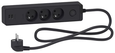 Multiprise 3 prises + 2 usb Schneider Electric Odace anthracite 1.5 m