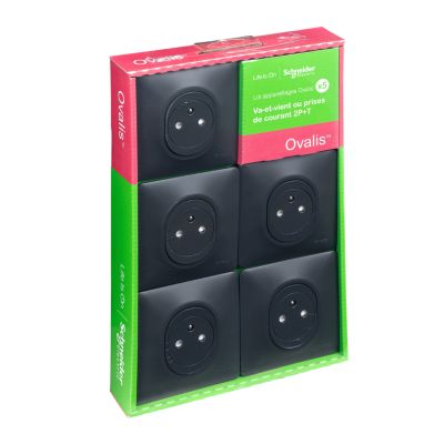 Prises de courant avec terre affleurante complète Schneider Electric Ovalis anthracite, lot de 5