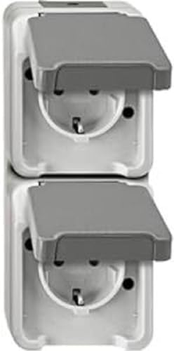 Schneider Electric Merten MEG2328-8029 Aquastar Prise Schuko 2 Prises Verticales, Montage en saillie, Protection Anti-Contact, IP44, Aquastar Gris Clair