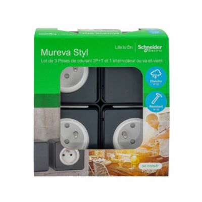 3 prises avec terre + 1 interrupteur va-et-vient Schneider Electric Mureva Styl gris anthracite, lot