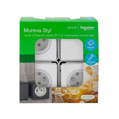 3 prises avec terre + 1 interrupteur va-et-vient Schneider Electric Mureva Styl blanc, lot