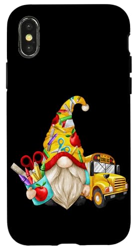 Cute Teacher GNOME with Big Yellow Bus for School Bus Driver Coque pour iPhone X/XS