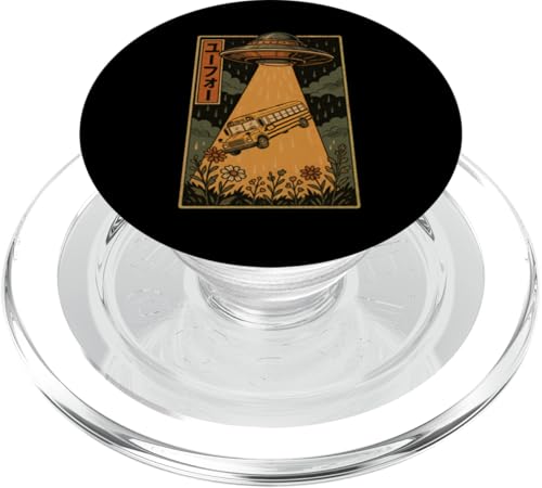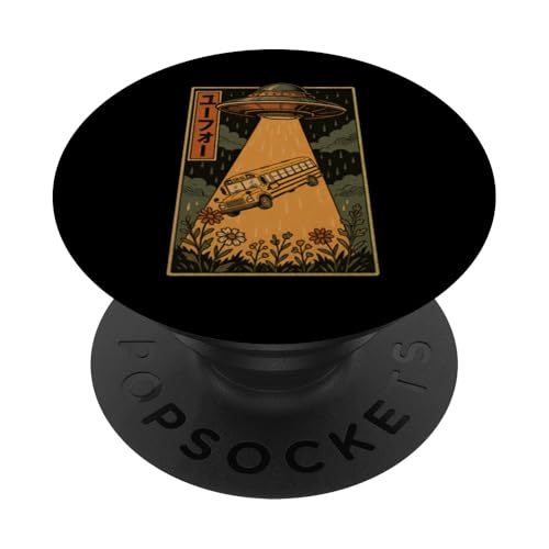UFO School Bus Vintage, enlèvement par Un Extraterrestre PopSockets PopGrip Adhésif